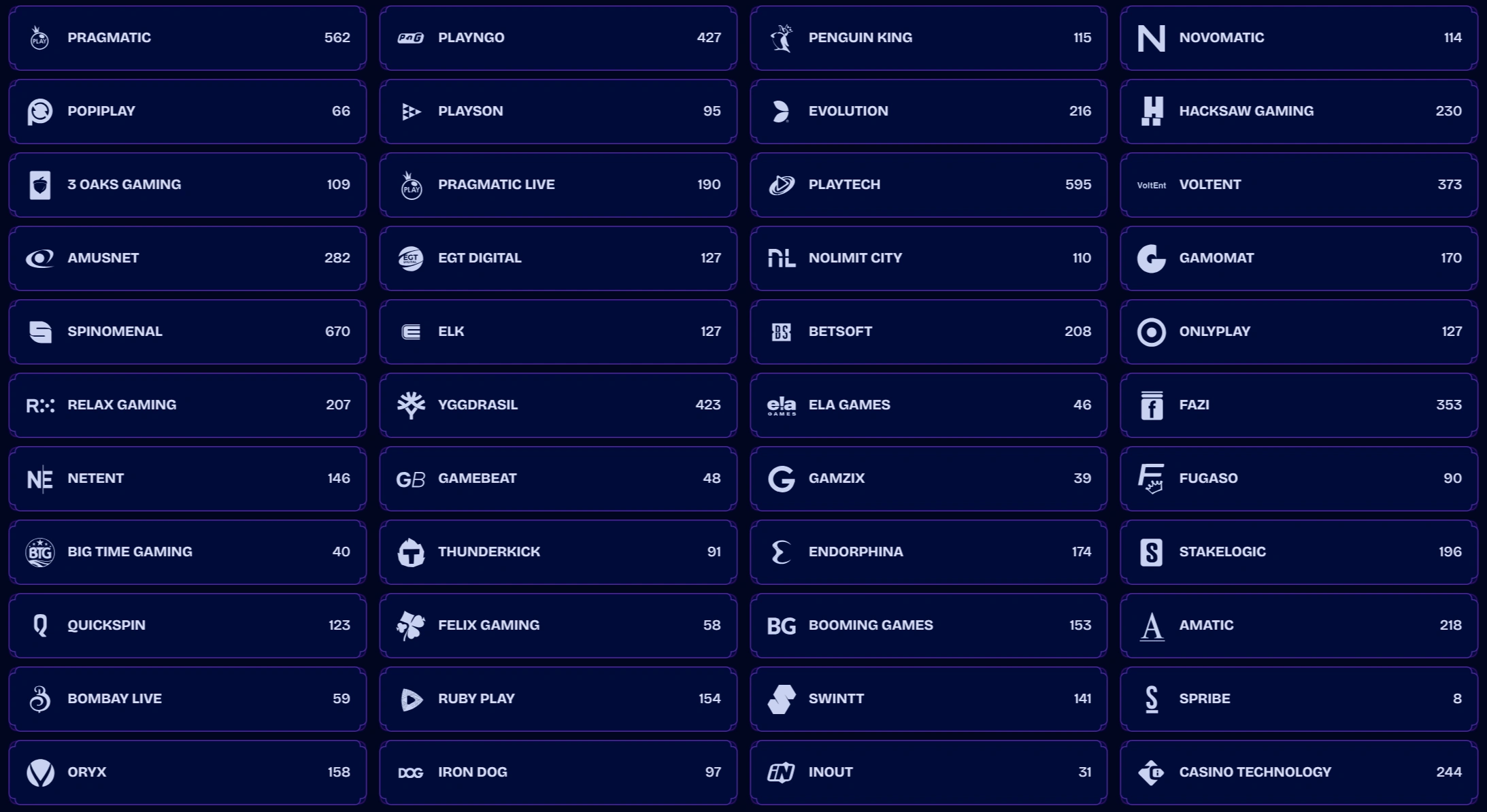 Netent Play'n GoEvolution Quickspin Big Time Gaming Yggdrasil Nolimit City iSoftBet Playson
